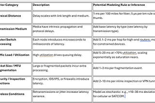 We’re trying to address a practical approach to network latency modeling that blends deterministic physics-based latency (distance, propagation medium…
