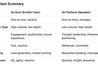 In the context of a conference or trade show, being on dust versus being on platform represents two very different but equally critical facets of…