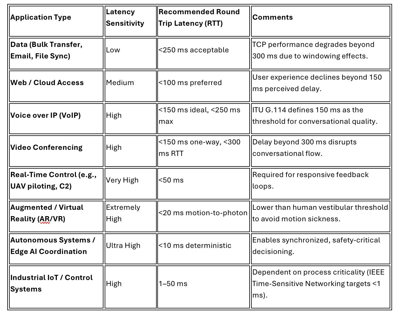For mission networks (JADC2, C5ISR, or tactical edge), latency is not merely a performance measure; it defines operational feasibility. Command loops, sensor fusion, and fires coordination depend on deterministic, low-latency transport.